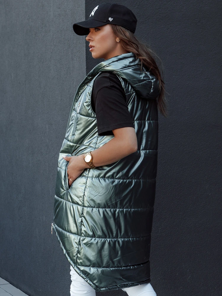 Přidání recenze k Dámská prošívaná vesta s kapucí dlouhá MERIS tmavě zelená FashionStreet TY4425