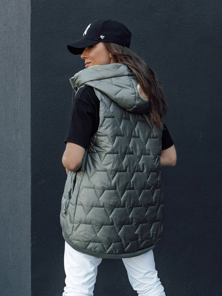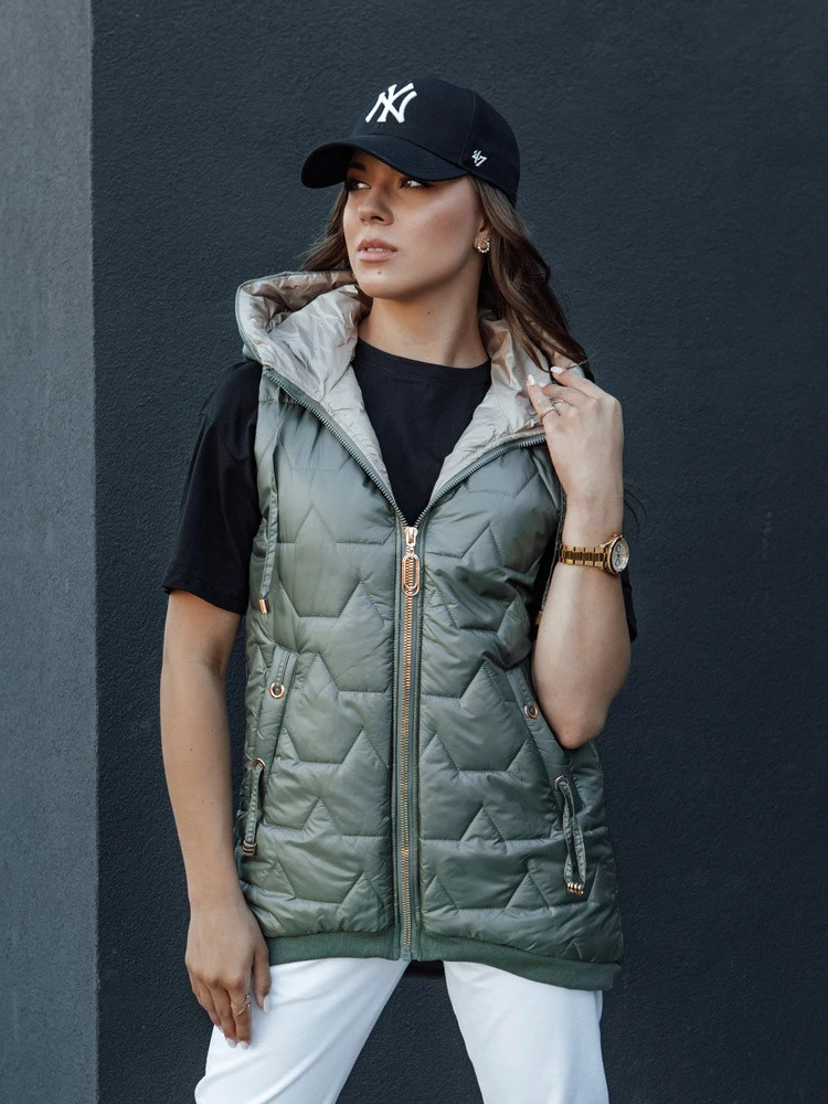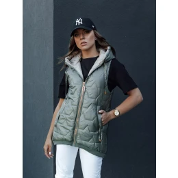 Dámská prošívaná vesta s kapucí GLITZY zelená FashionStreet TY4456