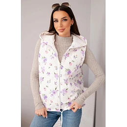 • Dámská prošívaná vesta s květinami a kapucí fialová