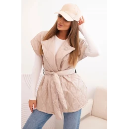 • Dámská prošívaná vesta s páskem a širokým límcem béžová