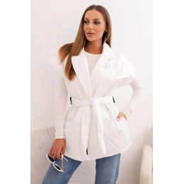 • Dámská prošívaná vesta s páskem a širokým límcem bílá