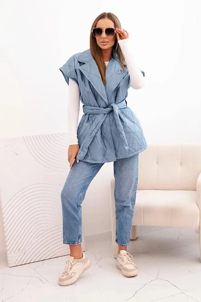 • Dámská prošívaná vesta s páskem a širokým límcem džínová