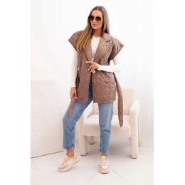 Dámská prošívaná vesta s páskem a širokým límcem fango