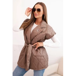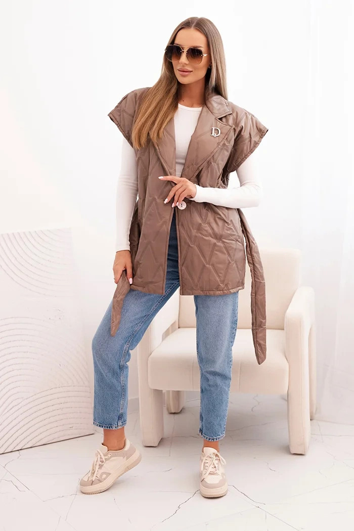 Dámská prošívaná vesta s páskem a širokým límcem fango
