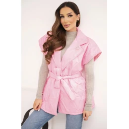 • Dámská prošívaná vesta s páskem a širokým límcem světle růžová