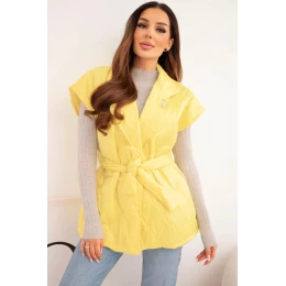 • Dámská prošívaná vesta s páskem a širokým límcem žlutá