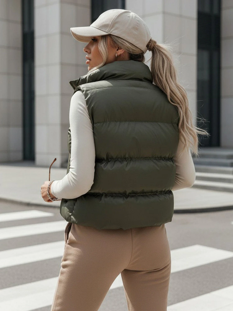 Vesta se bude dobře hodit k vypasované halence, dlouhému rukávu nebo tenkému svetru a vytvoří praktické každodenní soupravy. Kratší délka zdůrazňuje proporce siluety a hodí se k běžeckým kalhotám, džínům a legínám.