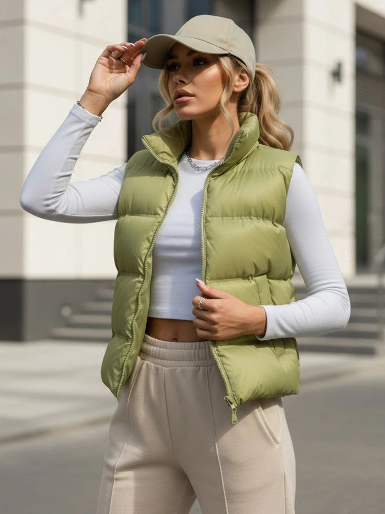 Vesta se bude dobře hodit k vypasované halence, dlouhému rukávu nebo tenkému svetru a vytvoří praktické každodenní soupravy. Kratší délka zdůrazňuje proporce siluety a hodí se k běžeckým kalhotám, džínům a legínám.