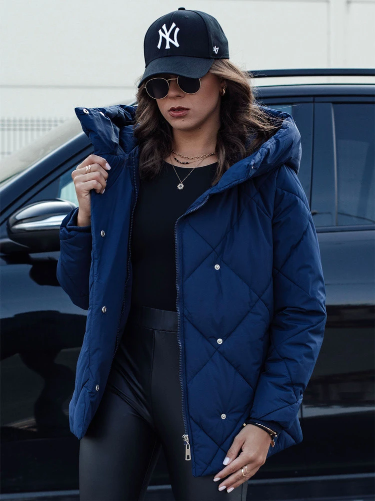 Dámská prošívaná zimní bunda COZYLUX s kapucí tmavě modrá FashionStreet TY4557