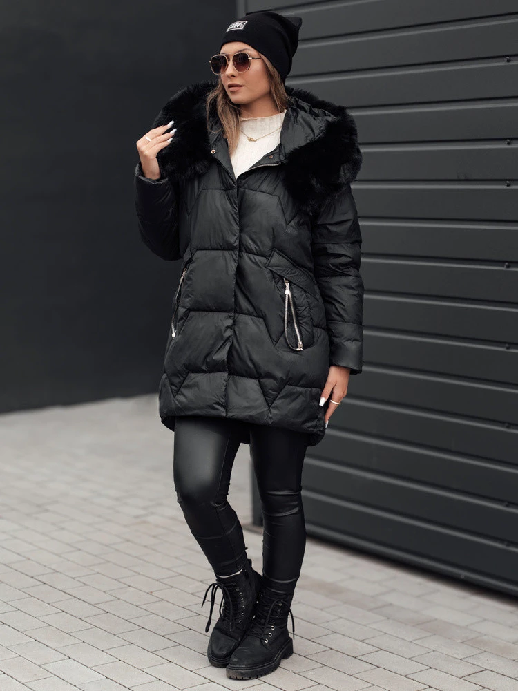 Dámská prošívaná zimní bunda FROSTYFIT s kapucí černá FashionStreet TY4675