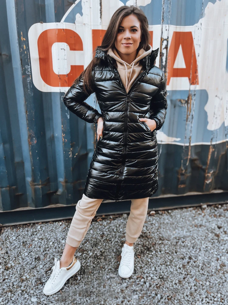 Dlouhá prošívaná bunda, s odepínací kapucí. Vyrobena z vysoce kvalitního materiálu. Výrobek se vyznačuje mimořádně ženským a módním střihem, ideální pro ženy, které rády sledují nejnovější trendy. Bunda je mírně zateplená.