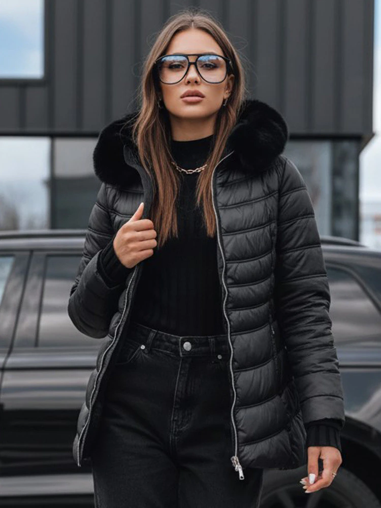 Výjimečná prošívaná bunda klasického, mírně projmutého střihu. Model má neodnímatelnou kapuci s odepínatelnou kožešinou. Na přední straně jsou dvě prostorné kapsy. Celý vzhled je mimořádně stylový a módní. Skvěle se hodí k elegantním i sportovním outfitům.