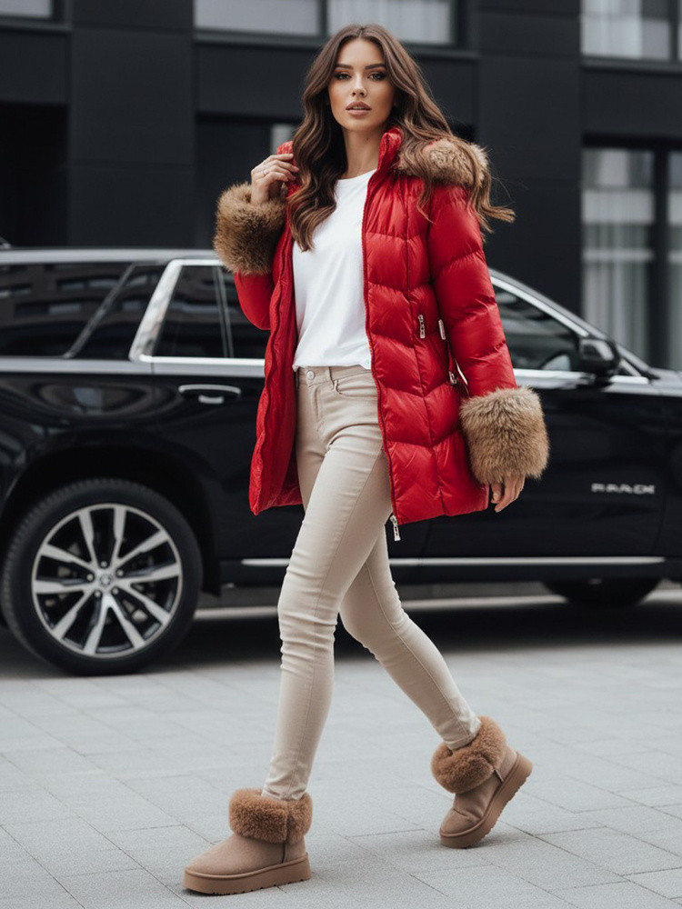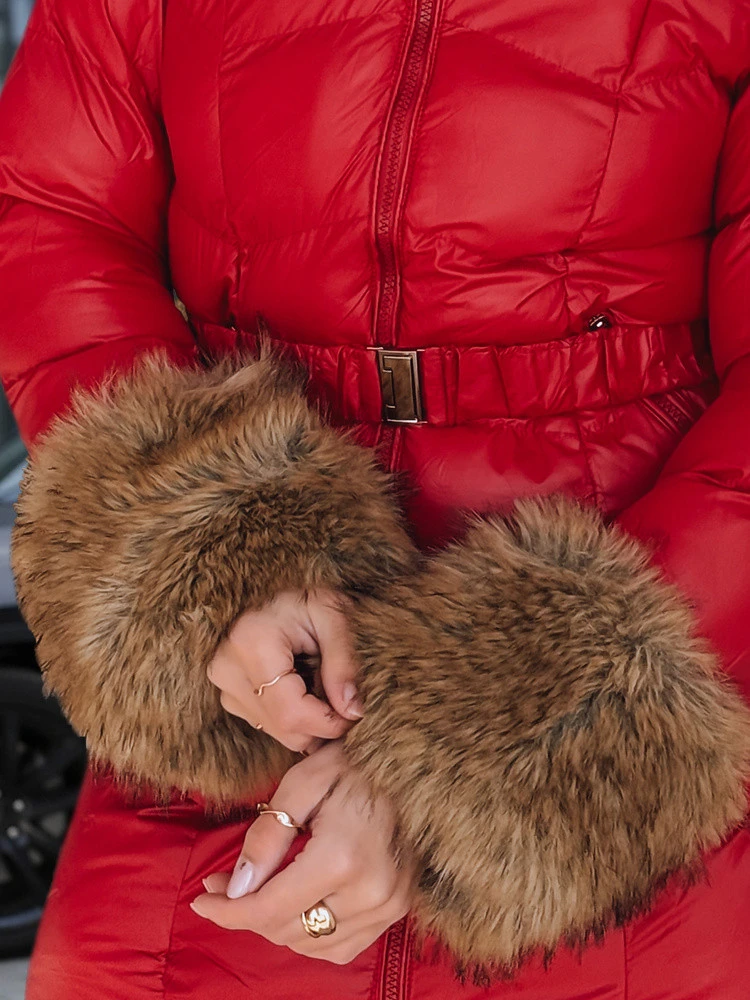 Model kombinuje vysokou funkčnost s ženským střihem do poloviny stehen. Kapuce a manžety lemované měkkou umělou kožešinou jsou odnímatelné, což umožňuje rychle zjednodušit vzhled bundy. Materiál se syntetickým zateplením se dobře osvědčuje v městských zimních podmínkách a pásek se sponou stabilizuje bundu při pohybu.