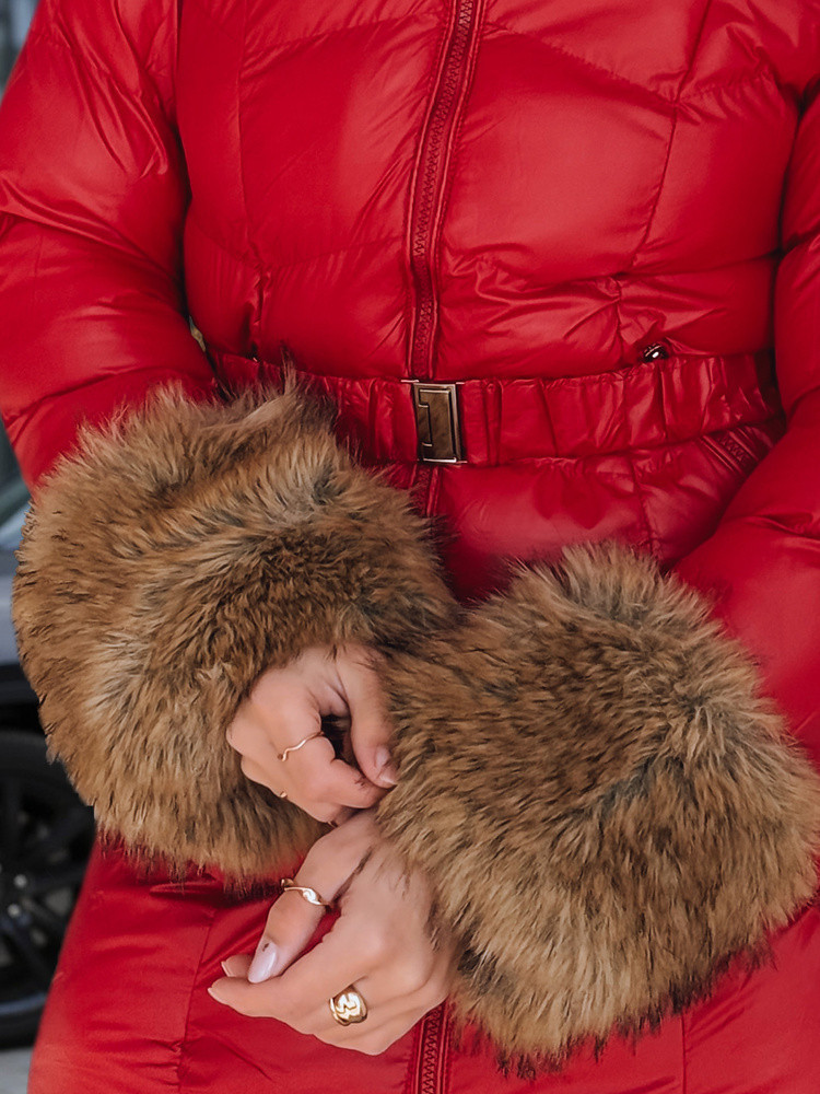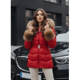 Dámská prošívaná zimní bunda s kapucí TY5321 červená