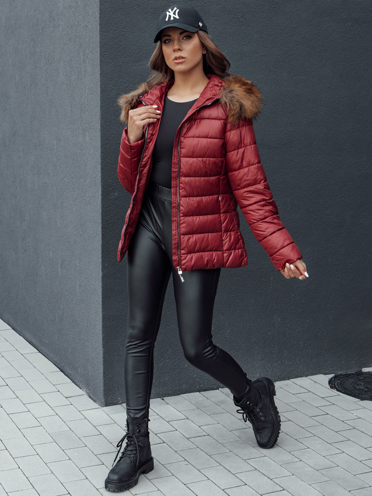 Dámská prošívaná zimní bunda s kapucí ESTELLA vínová FashionStreet TY4530