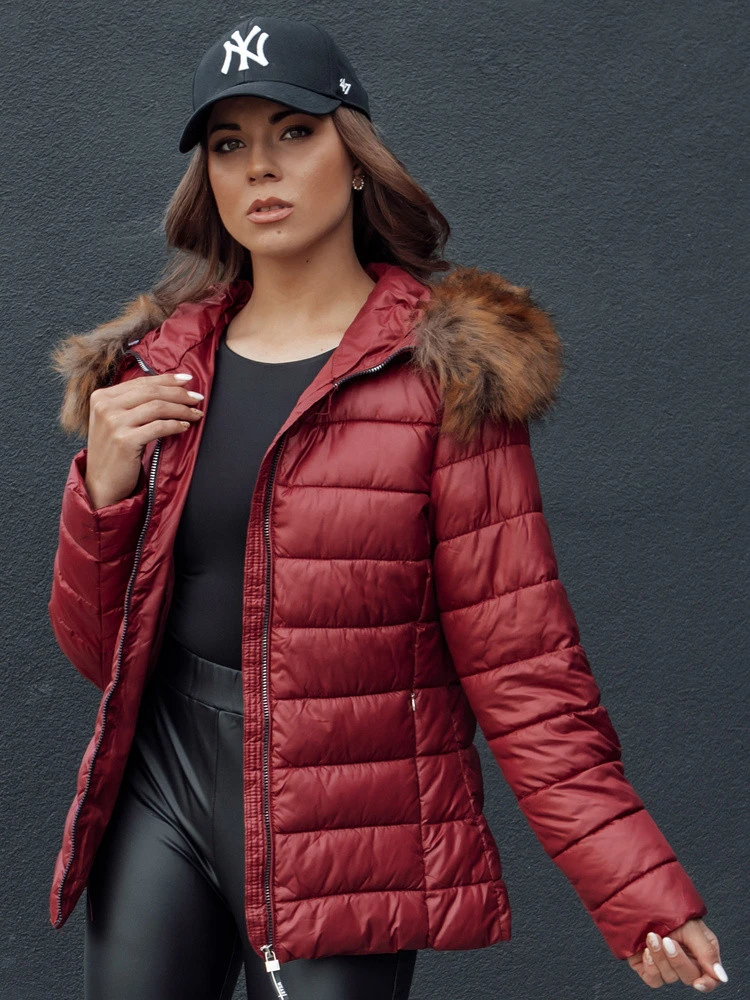 Přidání recenze k Dámská prošívaná zimní bunda s kapucí ESTELLA vínová FashionStreet TY4530