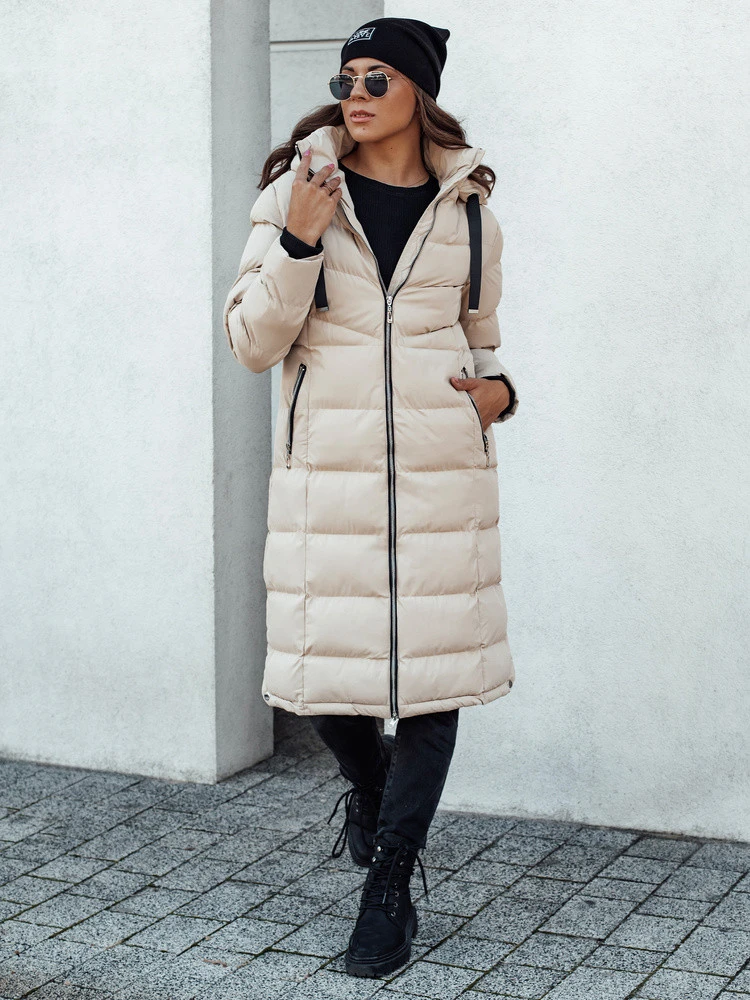 Dámská prošívaná zimní bunda s kapucí MENSI béžová FashionStreet TY4585