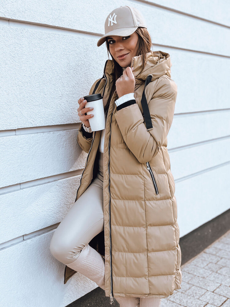 Dámská prošívaná zimní bunda s kapucí MENSI tmavě béžová FashionStreet TY3970