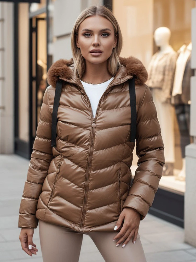 Prošívaná bunda s kapucí z lesklého materiálu, díky které vyčníváte z davu. Model má úzký střih, díky kterému krásně zvýrazní ženské tvary. Bunda má neodepínatelnou kapuci a odepínatelný kožíšek, díky kterému z ní můžeme udělat sportovnější nebo elegantnější verzi. K dostání v několika barevných provedeních.