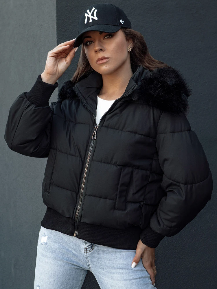 Dámská prošívaná zimní bunda s kožešinou černá Dstreet model 21979224 - FashionStreet