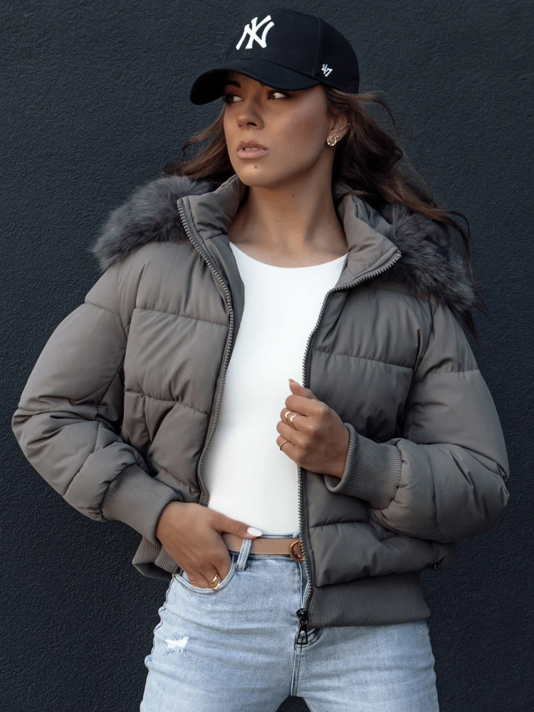 Přidání recenze k Dámská prošívaná zimní bunda s kožešinou COLDPACK tmavě šedá FashionStreet TY4428