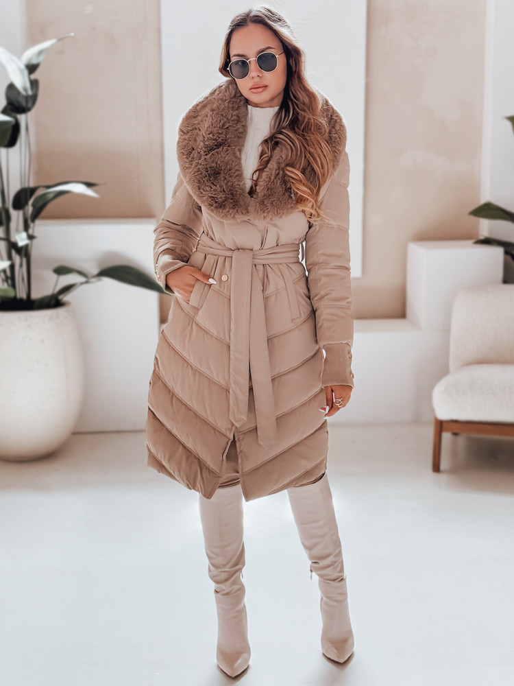 Dámská prošívaná zimní bunda s kožešinou FashionStreet camel TY5077