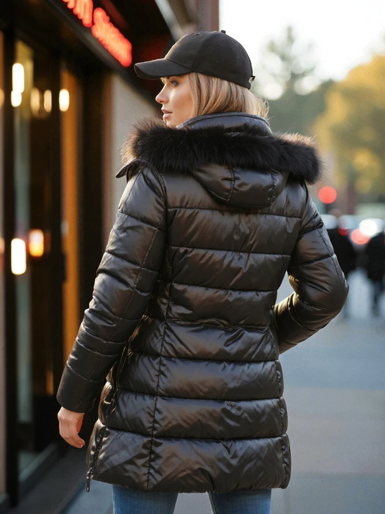 3. Dámská prošívaná zimní bunda s kožešinou SHINE černá FashionStreet TY4483z