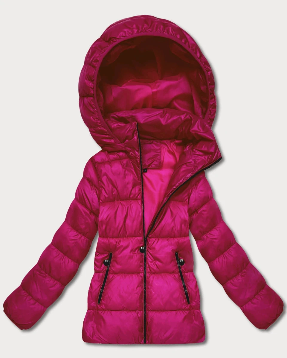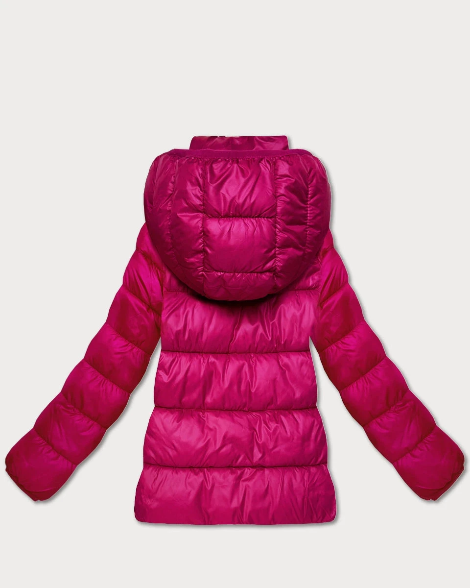 Dámská prošívaná zimní bunda ve fuchsijové barvě v délce k bokům (T3-2656#-17)