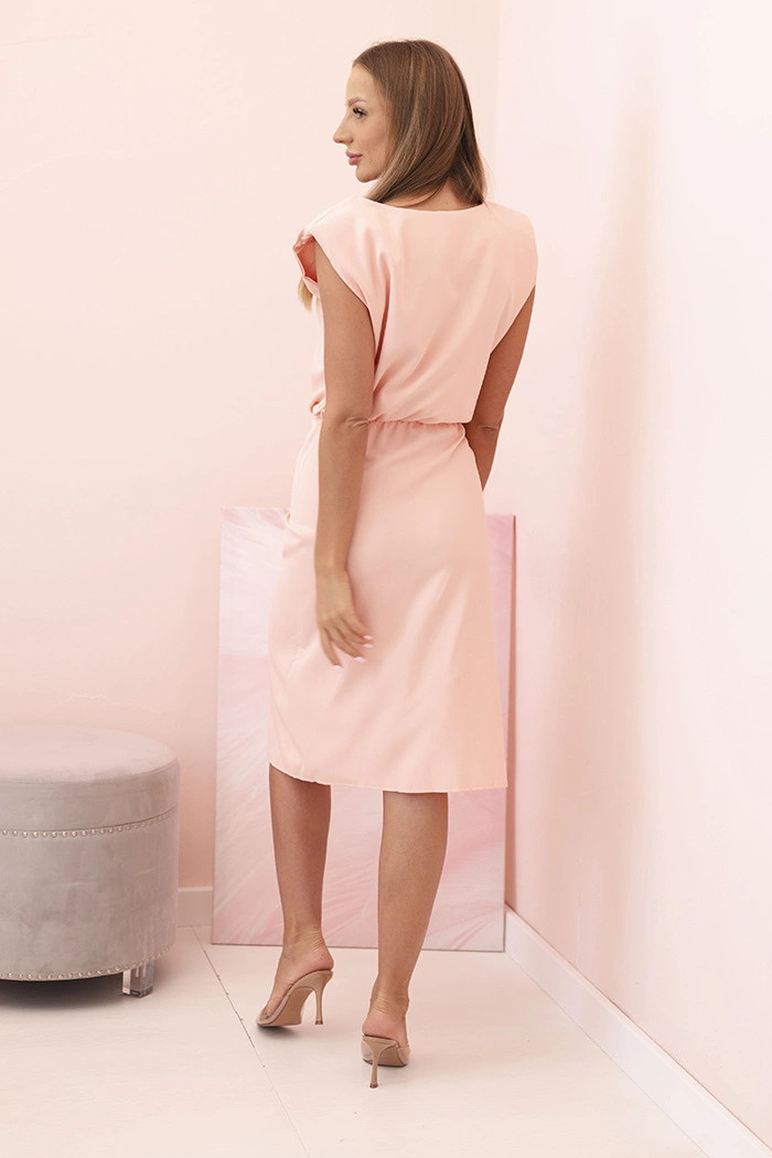 Tento dámský pletený bavlněný šaty je skvělou volbou na každodenní nošení a letní stylizace. Přiléhavý střih krásně zvýrazňuje siluetu a elastický materiál zajišťuje pohodlí po celý den. Výstřih ve tvaru písmene V s ozdobnými knoflíky dodává celku ženský a stylový charakter.