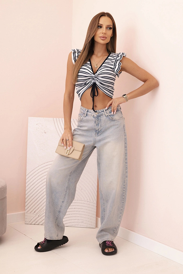 Dámská pruhovaná blůza s nařasením a volánkem model 21291569 - K-Fashion