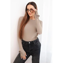Žebrovaná struktura dodává topu eleganci, a jemné nařasení na boku krásně podtrhuje pas, dodává postavě ženský tvar. Model ideální jak na každodenní nošení, tak na více neformální vycházky – skvěle se kombinuje jak s kalhotami, tak s sukní.