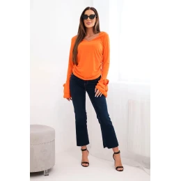 Dámská pruhovaná blůza s V výstřihem a volánky na rukávech oranžová