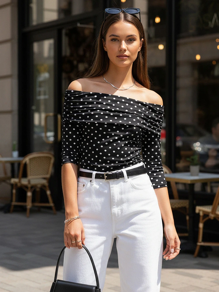 Oblečte si halenku BLISSE - kvintesenci stylu a šarmu. Španělská halenka elegantně odhaluje ramena a nadčasový hráškový vzor jí dodává šarm. Ideální pro zvláštní příležitosti i každodenní vycházky!