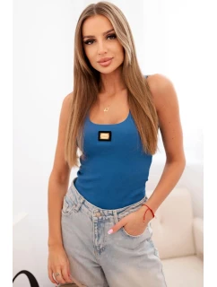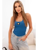 Dámská pruhovaná top na ramínkách s ozdobnou jeansovou nášivkou modrá