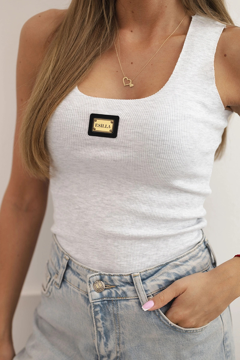 Dámská pruhovaná top na ramínkách s ozdobnou nášivkou světle šedá