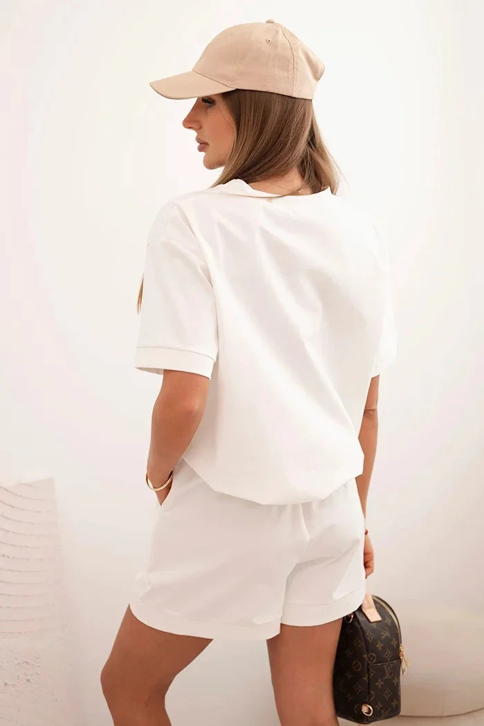 Dámská punto souprava s krátkým rukávem a volnými šortkami ecru