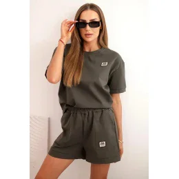 Dámská punto souprava s krátkým rukávem a volnými šortkami khaki