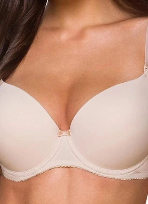 Elegantní béžová dámská podprsenka s vytvarovanými košíčky s gelovými vycpávkami, které krásně nadnáší a stabilizují poprsí.