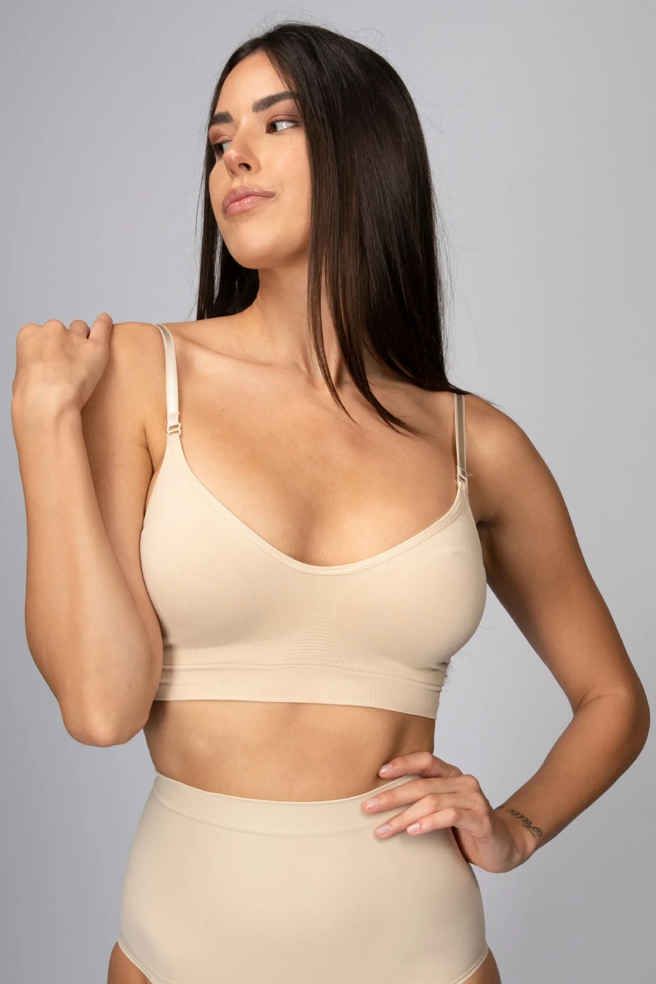 Podprsenka, která přirozeně zvýrazňuje tvar. Díky vyjímatelným vyztuženým košíčkům je dosaženo přirozeného push-up efektu. Nastavitelná ramínka a absence kostic maximalizují pohodlí a komfort. K dispozici ve dvou barvách: černé a béžové
