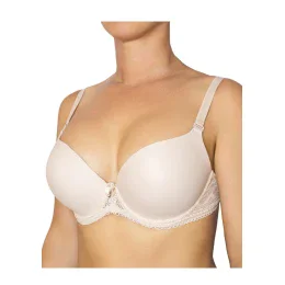 Dámská podprsenka značky Fantasy. Push up podprsenka klasického střihu je vhodná na každodenní nošení i do hlubšího výstřihu. Jemné a měkké košíčky s kosticemi jsou formovány do push up efektu pomocí měkké pěnové výplně, vytvarují Vám krásný a plný dekolt. Ramínka jsou lehce délkově nastavitelná a odnímací. Mezi košíčky je stříbrná aplikace s blyštivým kamínkem. Dvojitě podšitý celokrajkový obvod je ukončen zapínáním na dva háčky a dvě pozice.