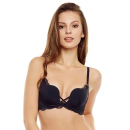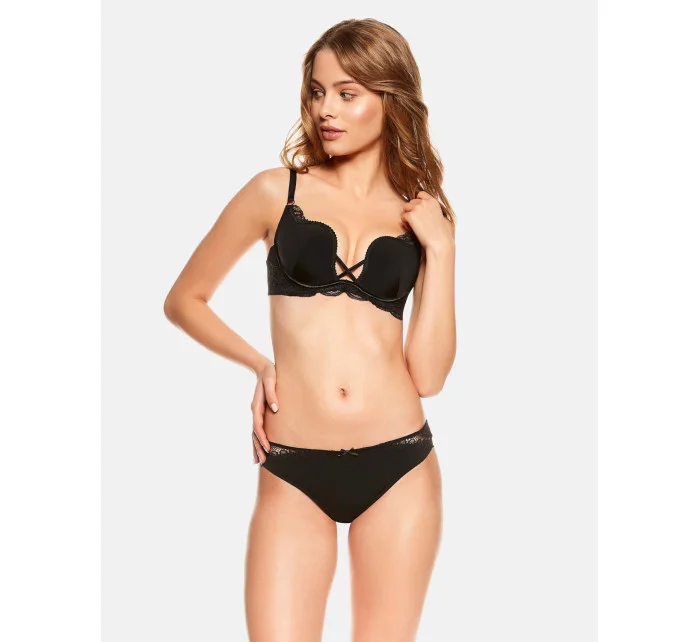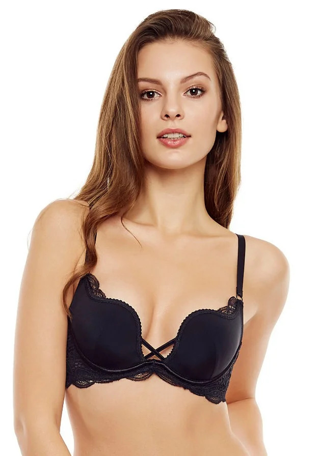 Dámská push-up podprsenka 36121 Esotiq&henderson - černá barva - odnímatelná ramínka - vyztužené košíčky - košíčky jsou zdobené krajkou - netradiční střih