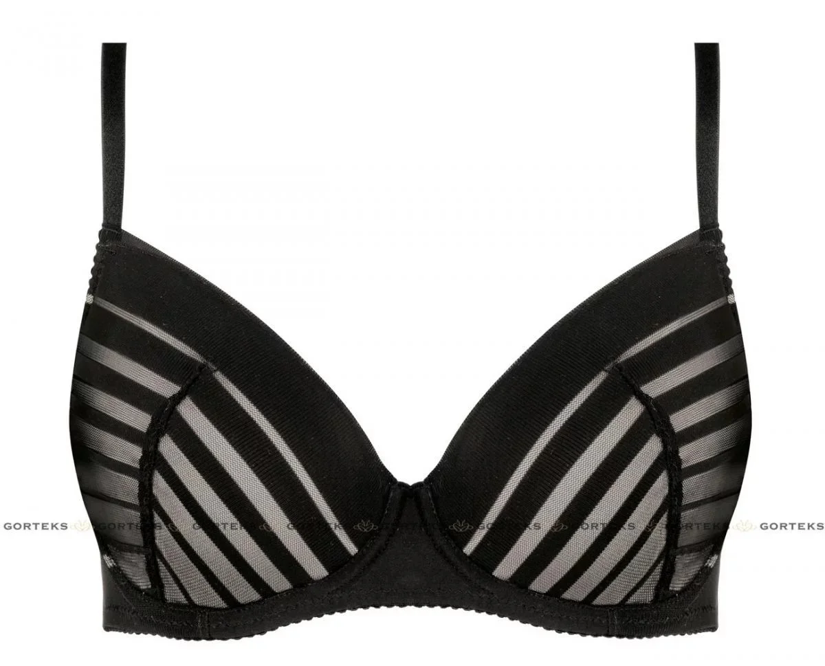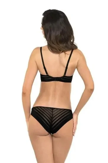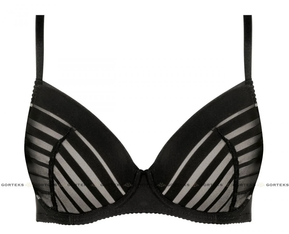 Košíčky jsou vyztuženy speciální výztuhou, která je příjemně poddajná a dobře se přizpůsobí vašim tvarům. Vnější stranu halí jemná tkanina se vzorem, v elegantní černé barvě.
