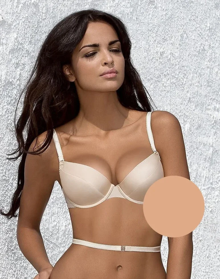 Podprsenka je vhodná pro nošení pod oblečením s odhalenými zády. Push-up košíčky mají šikmé švy. Vzadu je pásek, který je možné nastavit a odepnout. Pásek je možné vyměnit na silikonový. Model má vyjímatelné vycpávky. Ramínka je možné odepnout.