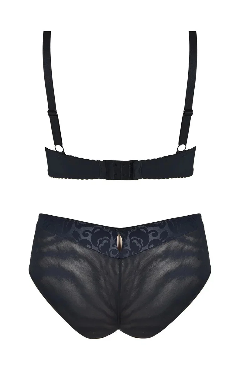 Dámská push-up podprsenka. Košíčky jsou pošité lesklým mikrovláknem. Na horním okraji je krajková stuha. Ramínka u košíčků jsou zdvojená. Podprsenka je vhodná na malá a střední prsa. Má vyjímatelné vycpávky.