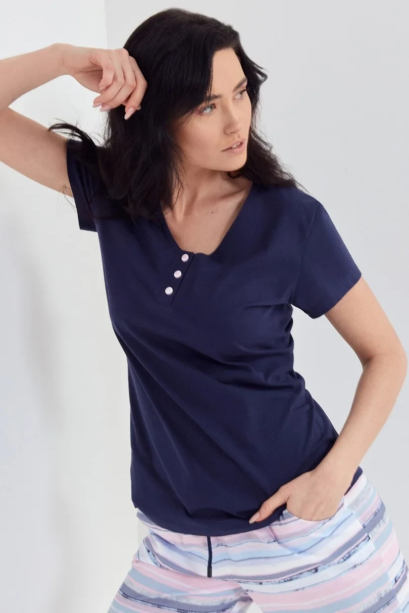 Dámské letní pyžamo z vysoce kvalitního bavlněného úpletu s letními pruhy.