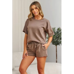 Dámské pyžamo SET.7450 dr nap je moderní souprava domácího oblečení určená pro ženy, které si cení pohodlí, volnosti a minimalistického stylu. Je dokonalou kombinací funkčnosti a módního, ležérního charakteru, která se osvědčí jak při relaxaci, tak při vzdálené práci nebo každodenních povinnostech v domácnosti.