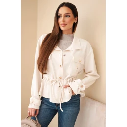 Dámská rozepínací mikina máslová s model 21951971 a kapsami béžová - K-Fashion