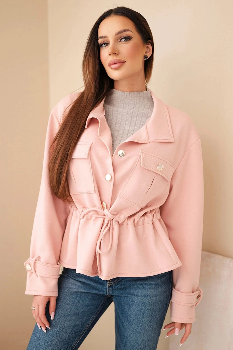 Dámská rozepínací mikina máslová s tkaničkou a kapsami tmavě pudrově růžová