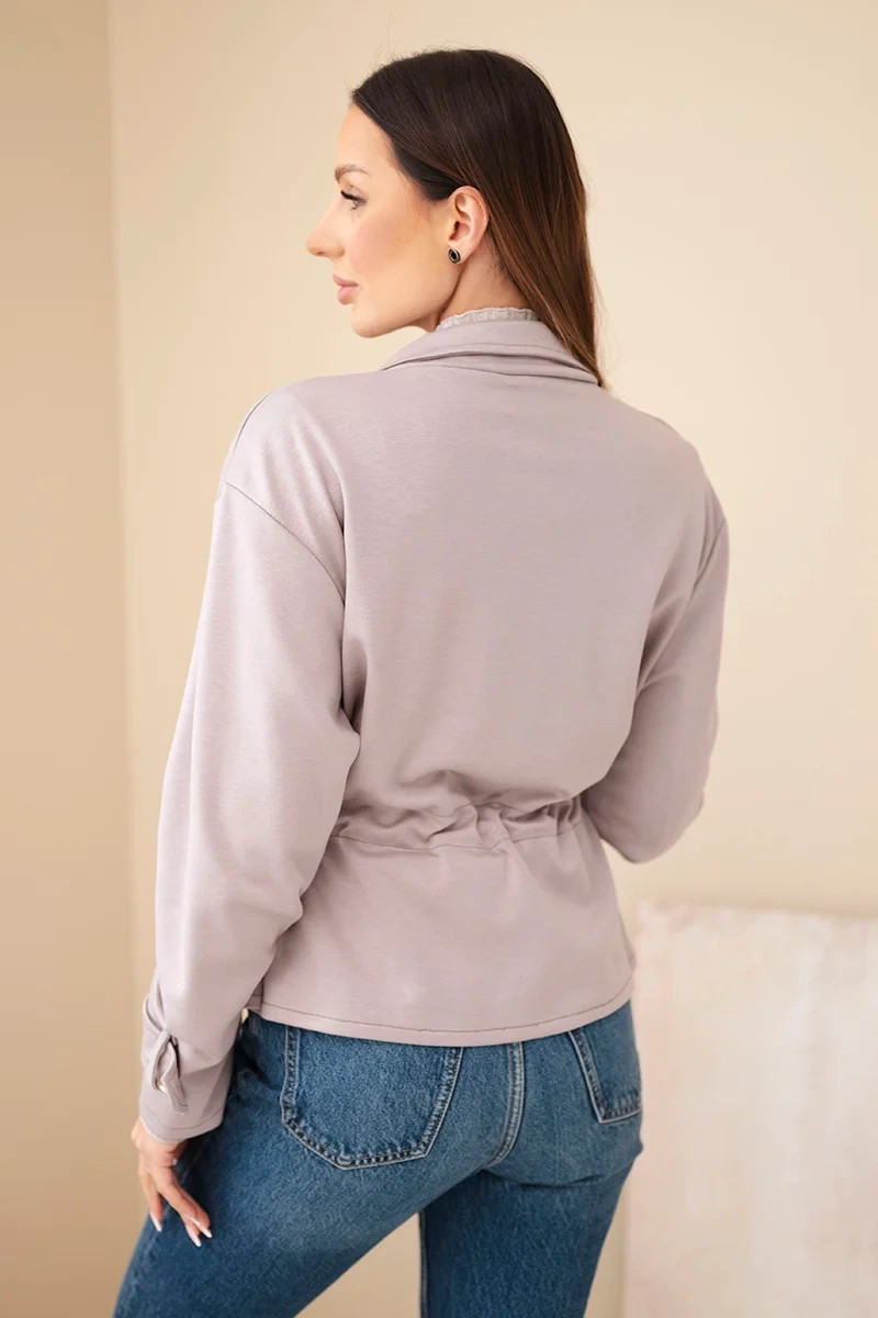 Tato dámská rozepínací mikina v máslovém odstínu je kombinací pohodlí a elegantního, městského stylu. Delší střih se skvěle hodí jako přehoz nebo lehká bunda na chladnější dny. Díky šňůrce v pase ji můžete přizpůsobit své postavě, zvýrazňujíc ženskou siluetu. Ozdobená velkými kapsami s klopami a knoflíkem, zajišťuje nejen módní vzhled, ale i praktické využití.