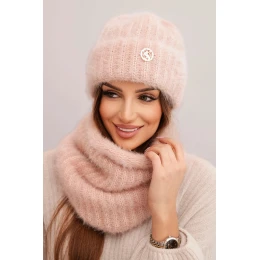 Přidání recenze k Dámská sada čepice a šály zimní huňaté s ozdobným model 21780839 světle pudrově růžová - K-Fashion